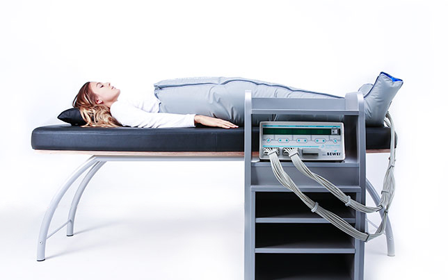 Nach jeder Behandlung folgt eine mechanische Luftdruckmassage zur Aktivierung des Lymphsystems. Hierdurch wird der Abtransport der gelösten Stoffwechsel-Endprodukte auf natürlichem Weg angeregt. Während der Behandlung liegen Sie ca. 25 Minuten in einem mechanischen „Mantel“, der Sie mit angenehmen Wellenbewegungen massiert. Diese Behandlung ist sehr wohltuend und wie die BEWEI Behandlung sehr entspannend.